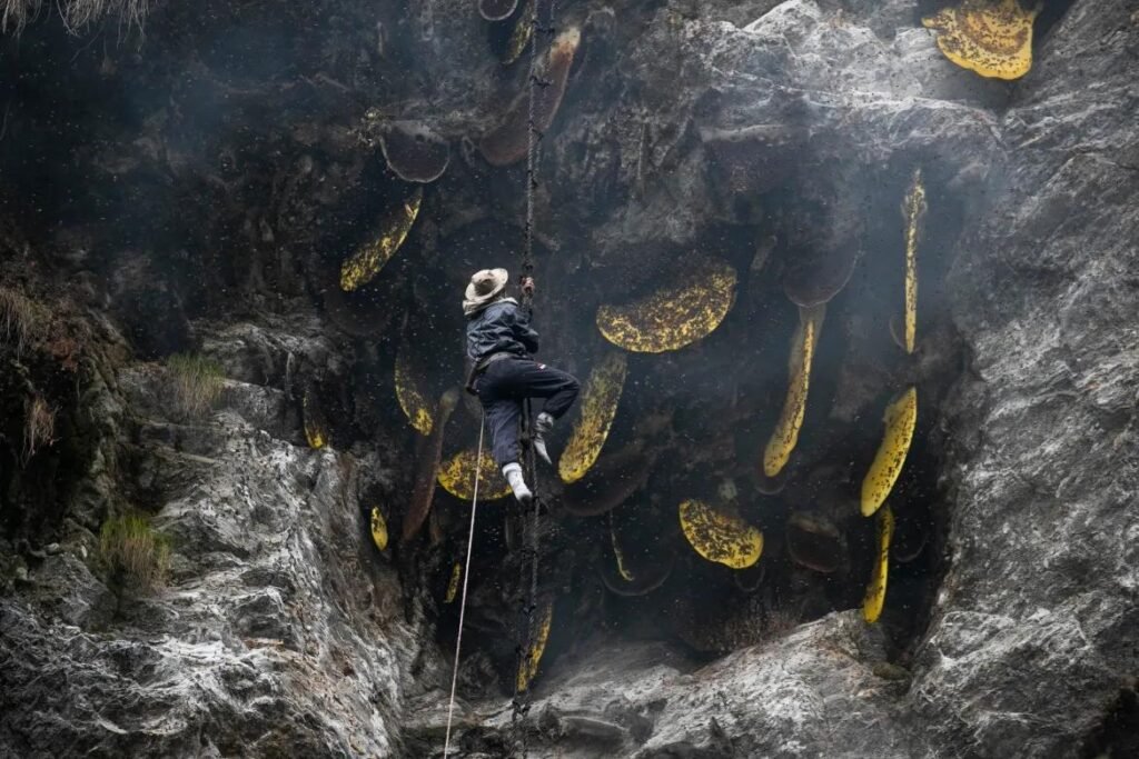 Scaling vertical cliffs with only rope ladders and bamboo sticks, honey hunters brave swarms of giant bees to collect the rare nectar. No machines. No shortcuts.
